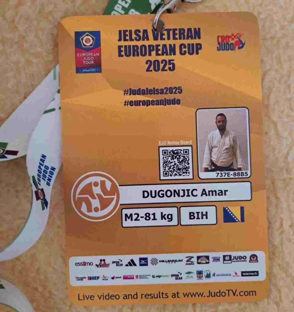 Na prestižnom međunarodnom takmičenju Jelsa Veteran European Judo Cup 2025, održanom u Hrvatskoj, Amar Dugonjić, član Judo kluba „Lukavac“, ostvario je još jedan zapažen uspjeh. U izuzetno jakoj konkurenciji, Dugonjić je osvojio srebrenu medalju u kategoriji M2 -81 kg, predstavljajući Bosnu i Hercegovinu i svoj klub na izvanredan način.
