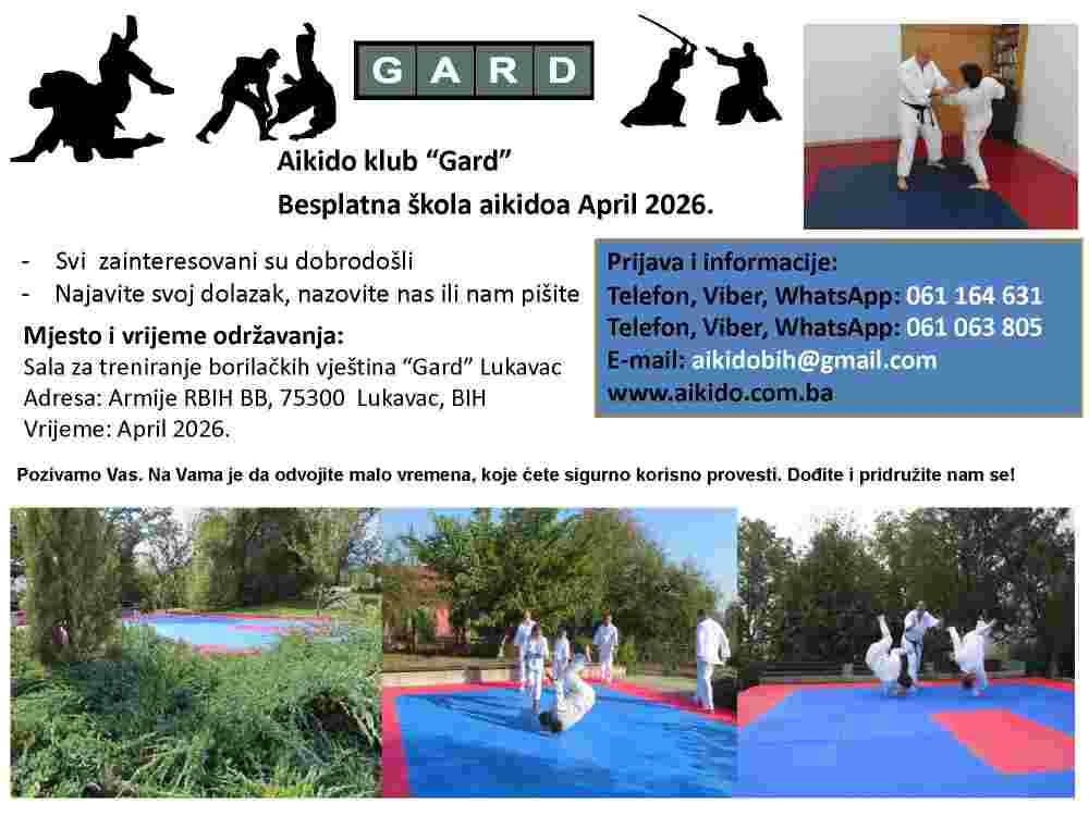 U cilju popularizacije borilačke vještine aikido, kao i promovisanja zdravog načina života i pozitivnih vrijednosti, Aikido klub “Gard” organizuje besplatnu školu aikidoa za sve zainteresovane građane.