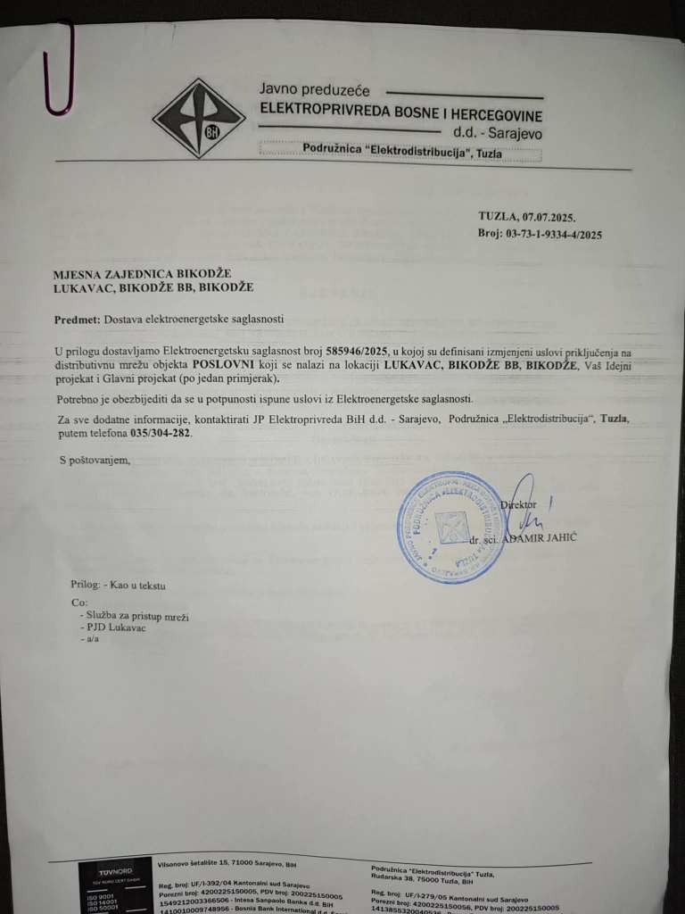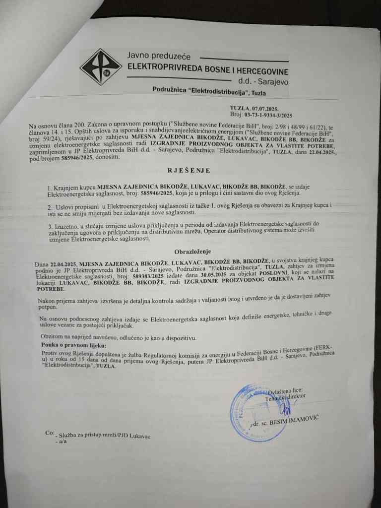 Još jedna sjajna vijest stiže iz Mjesne zajednice Bikodže – od danas je u njihovim rukama zvanična elektroenergetska saglasnost za postavljanje solarnih panela!