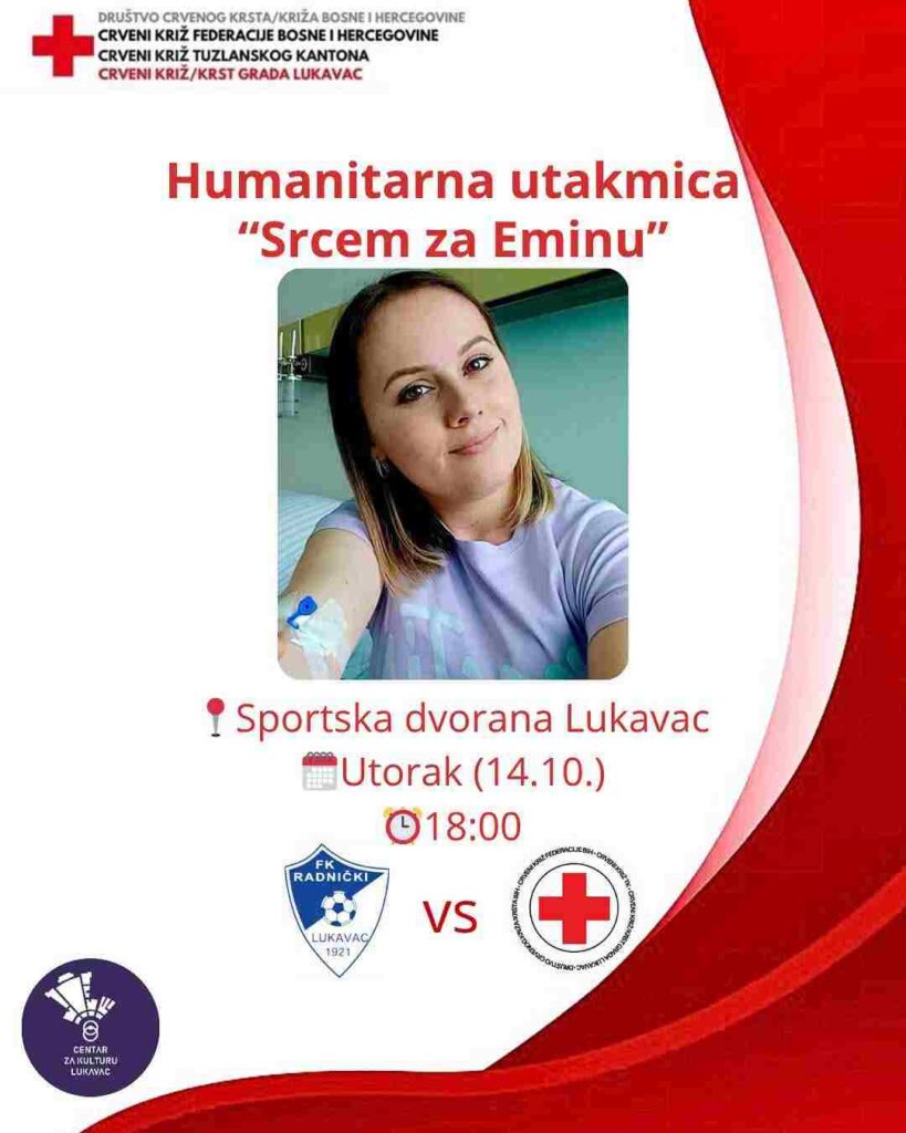 U znak podrške i solidarnosti, Crveni križ/krst grada Lukavac organizuje humanitarnu fudbalsku utakmicu između ekipa Crvenog križa/krsta i FK “Radnički” Lukavac.