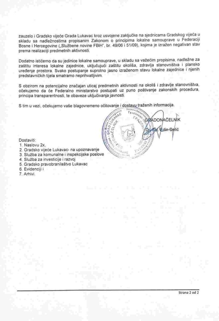 Tim povodom, Grad Lukavac je uputio zvaničan dopis Federalnom ministarstvu energije, rudarstva i industrije, sa sjedištem u Sarajevu, na ruke ministra Vedrana Lakića, kao i Vladi Tuzlanskog kantona, odnosno premijeru Irfanu Halilagiću, na upoznavanje.