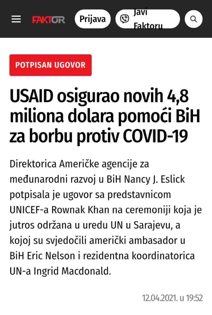 O USAID-u – da su godinama bili tu kada je Bosni i Hercegovini bilo najteže.