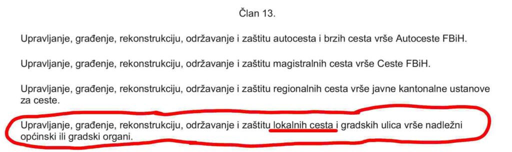 Zakon o cestama Federacije Bosne i Hercegovine (“Službene novine FBiH”, br. 12/10, 16/10 i 66/13)