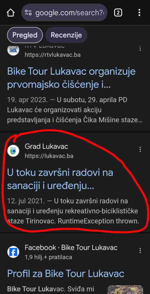 Ineresantno je da je jedan tekst koji govori o “biciklističkoj stazi” uklonjen …
