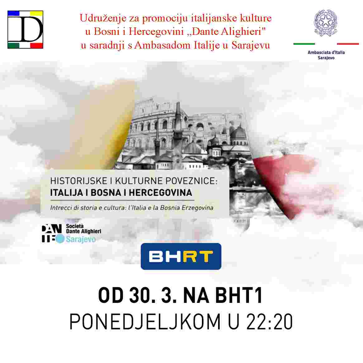 Od 30. marta, gledatelji BHT 1 mogu pratiti novi dokumentarni serijal “Historijske i kulturne poveznice: Italija i Bosna i Hercegovina”, koji se emituje svakog ponedjeljka u 22:20.
