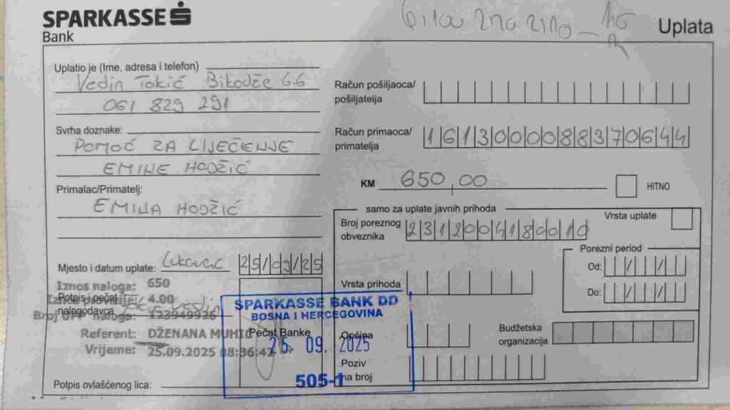 Iako je student i suočen sa vlastitim obavezama, Vedin je među prvima odlučio svoj cijeli vijećnički paušal uložiti u pomoć za liječenje Emine Hodžić, mlade majke koja vodi najtežu borbu – borbu za život.