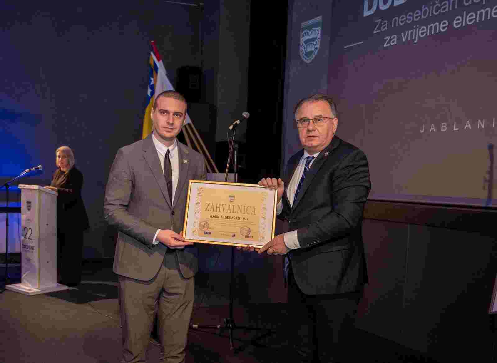 Povodom obilježavanja Dana Općine Jablanica, premijer Federacije Bosne i Hercegovine preuzeo je Zahvalnicu za nesebičan doprinos tokom elementarnih nepogoda koje su ovo područje pogodile u oktobru 2024. godine. Priznanje mu je uručio načelnik općine .