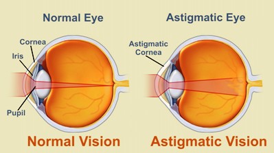 - Astigmatizam – nepravilna zakrivljenost rožnice ili očnog sočiva.