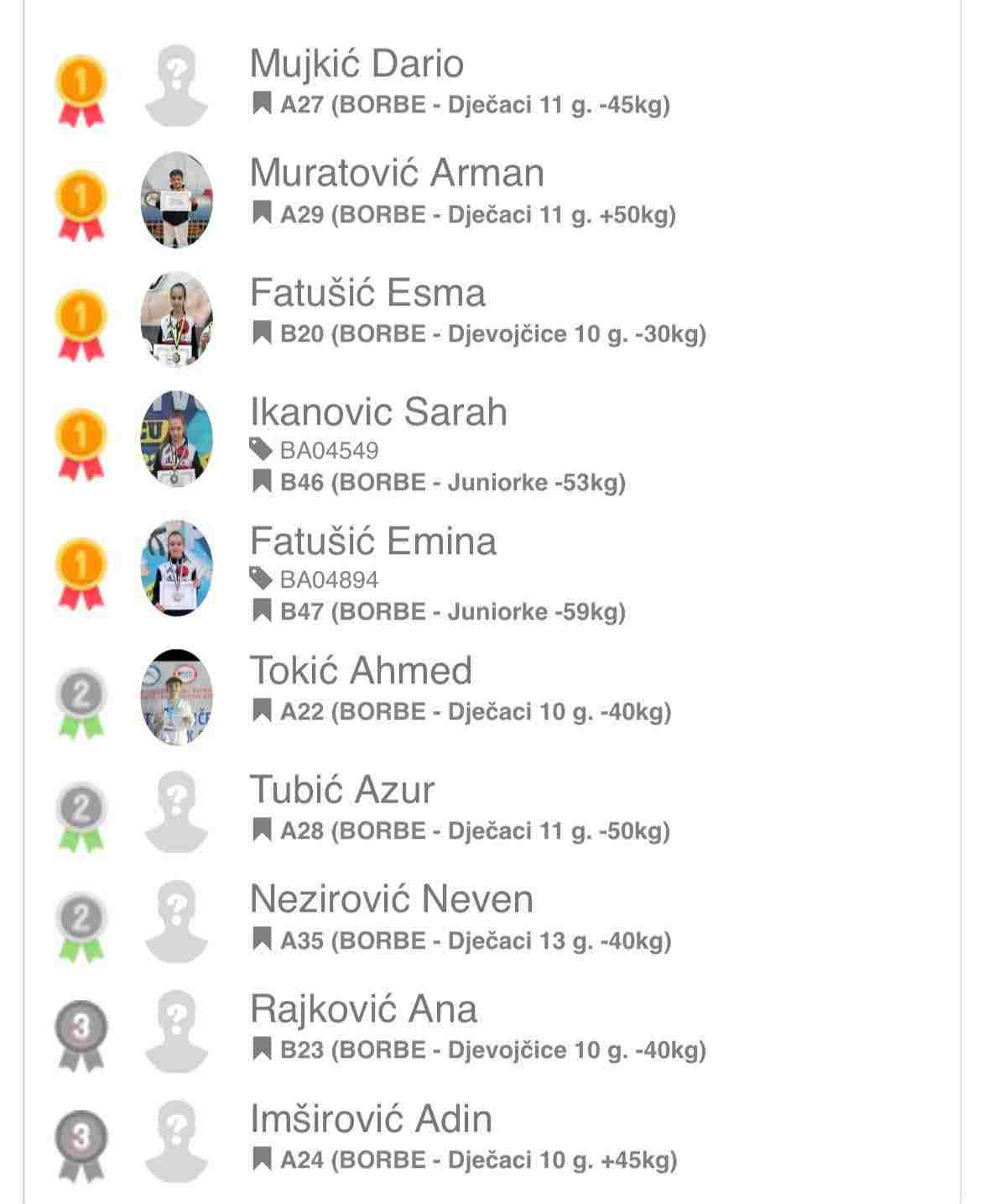 - Imsirović Adin – borbe, dječaci 10 god., +50 kg