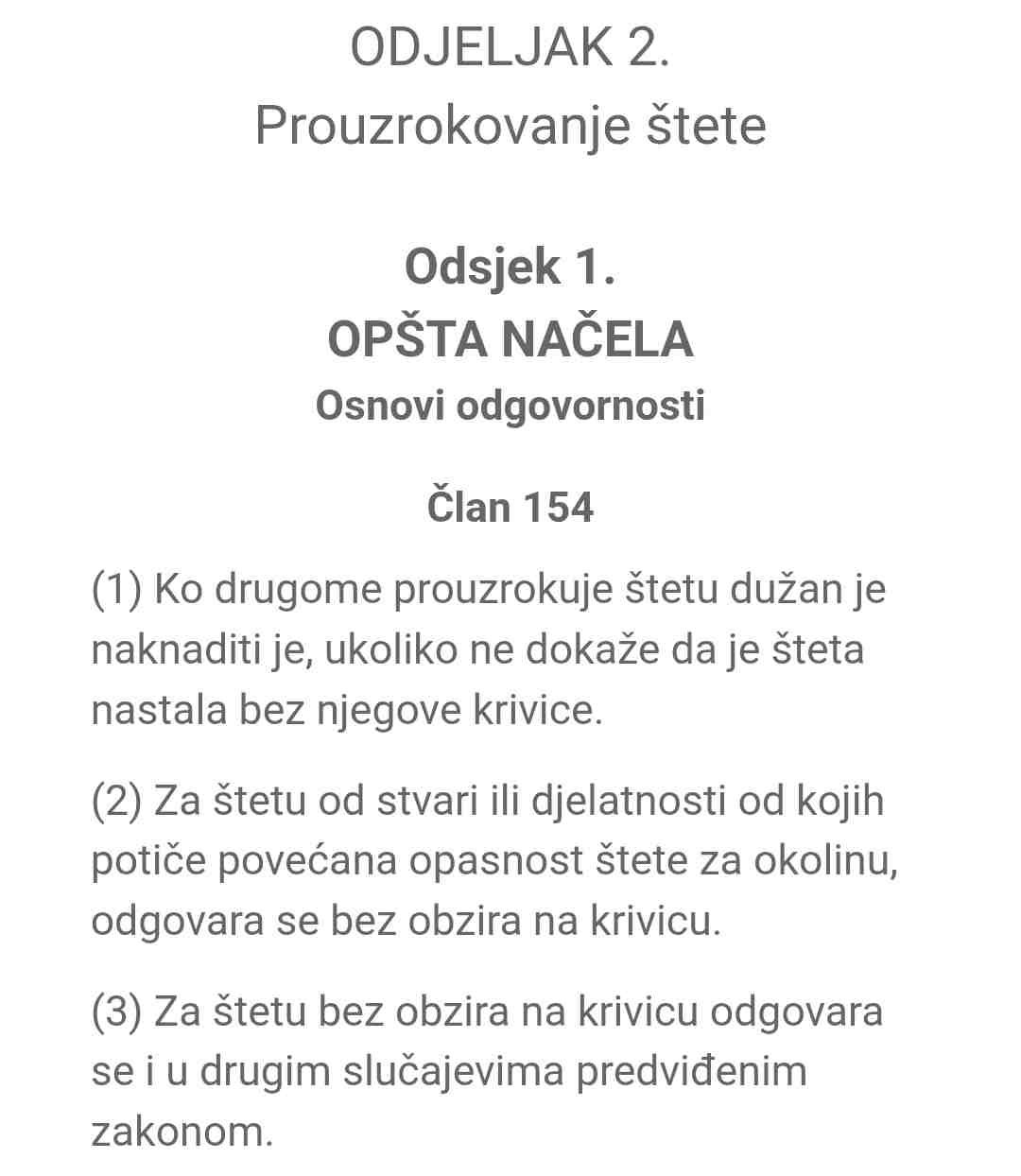 Prema Zakonu o obligacionim odnosima FBiH (članovi 154., 173 i 174.), svako ko prouzrokuje štetu drugome svojom krivicom, ili ne preduzme potrebne mjere da je spriječi, dužan je tu štetu nadoknaditi. U slučaju javnih površina, ova odgovornost je često objektivna – što znači da oštećeni ne mora dokazivati krivicu, već samo da je šteta nastala i da je u vezi s propustom nadležnog organa.