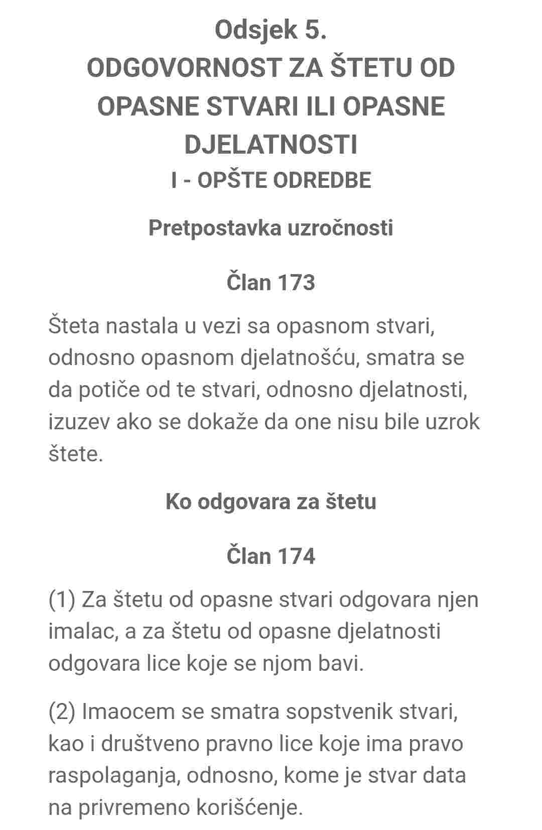 - Izvod iz Zakona o cestama FBiH i Zakona o obligacionim odnosima