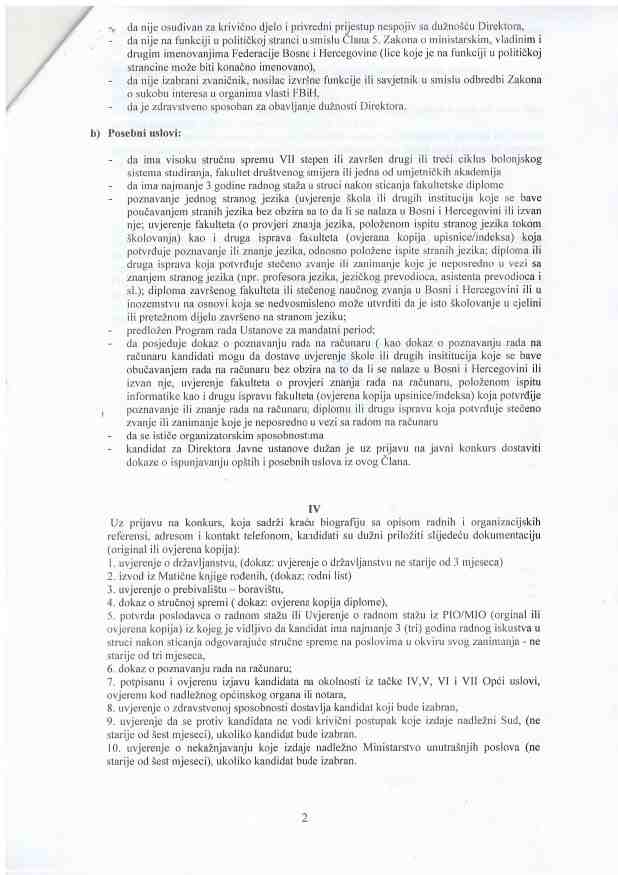 Posebno se izdvaja zahtjev da kandidat mora imati: