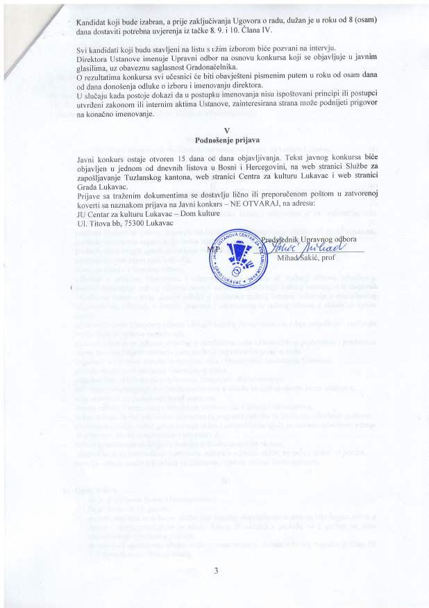 U javnom interesu je da konkurs za direktora JU Centar za kulturu Lukavac bude: