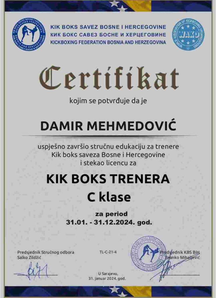 Danis Ribić ove godine je uspješno završio seminar za trenersku licencu C klase. Nakon odlične karijere kao borac u kickboxu i boksu, Danis je sada i licencirani trener u KBS Radnički.