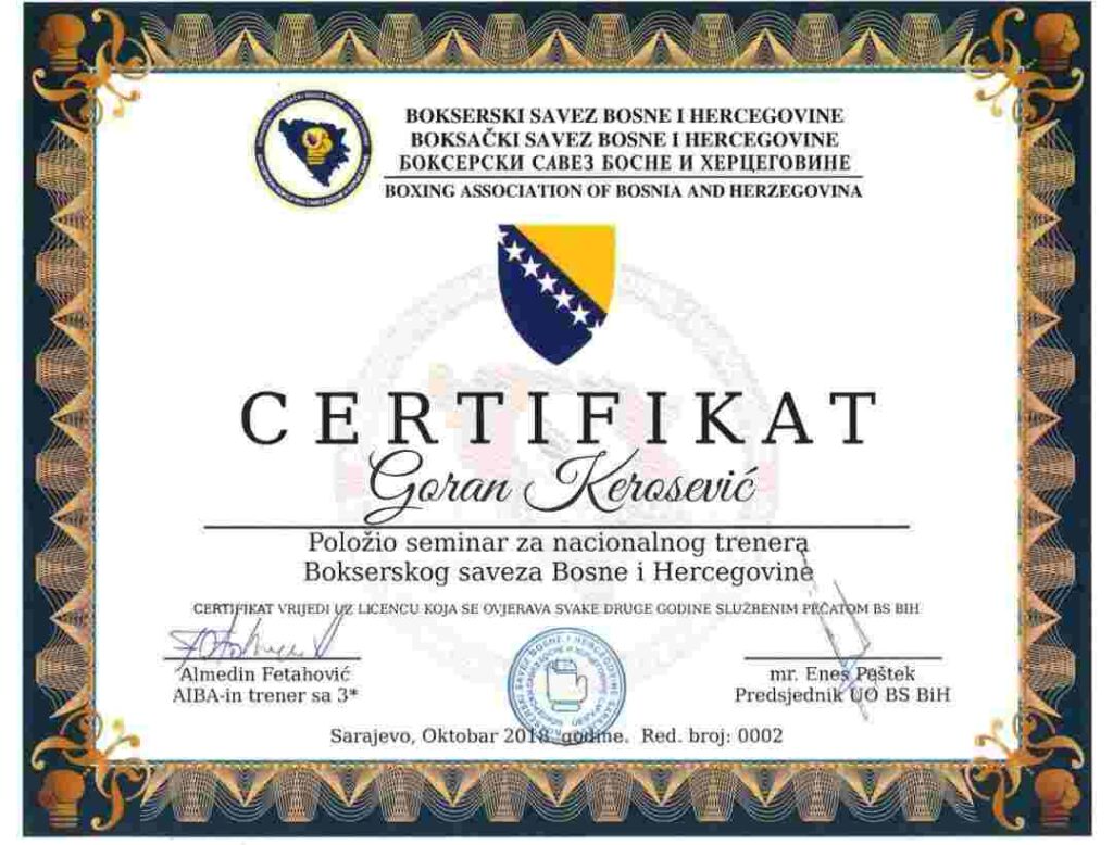 Goran Kerošević, dokazani trener, stekao je prestižnu WAKO trenersku licencu B klase, čime se svrstao u sami vrh licenciranih trenera u BiH. Osim toga, Goran je licencirani trener i u olimpijskom boksu, čime dodatno doprinosi razvoju borilačkih sportova u Lukavcu.