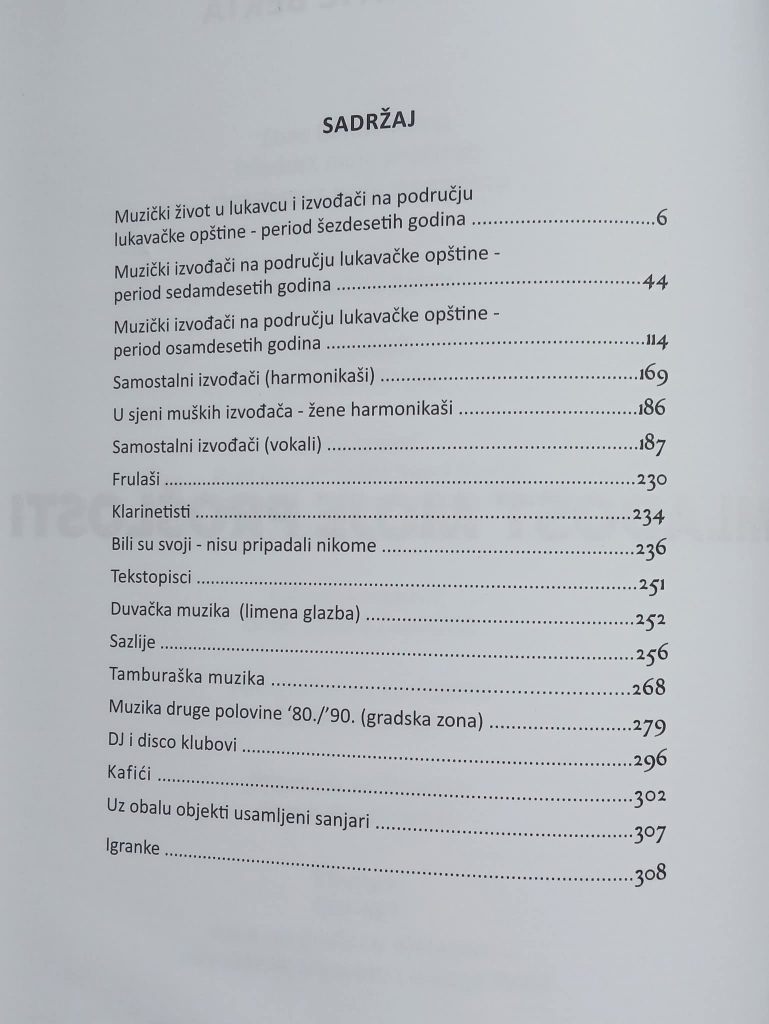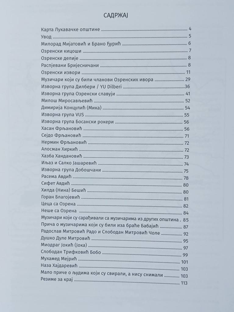 Ćirilični dio knjige, posvećen izvornoj muzici, donosi priče gotovo svih koji su ikada “udarili u tamburu” na ovom prostoru. Prema riječima samog autora, niko nije zaboravljen. Knjiga je svojevrsna enciklopedija muzičkog života Lukavca i okoline, prožeta autentičnim pričama, pjesmama i ličnim sudbinama.