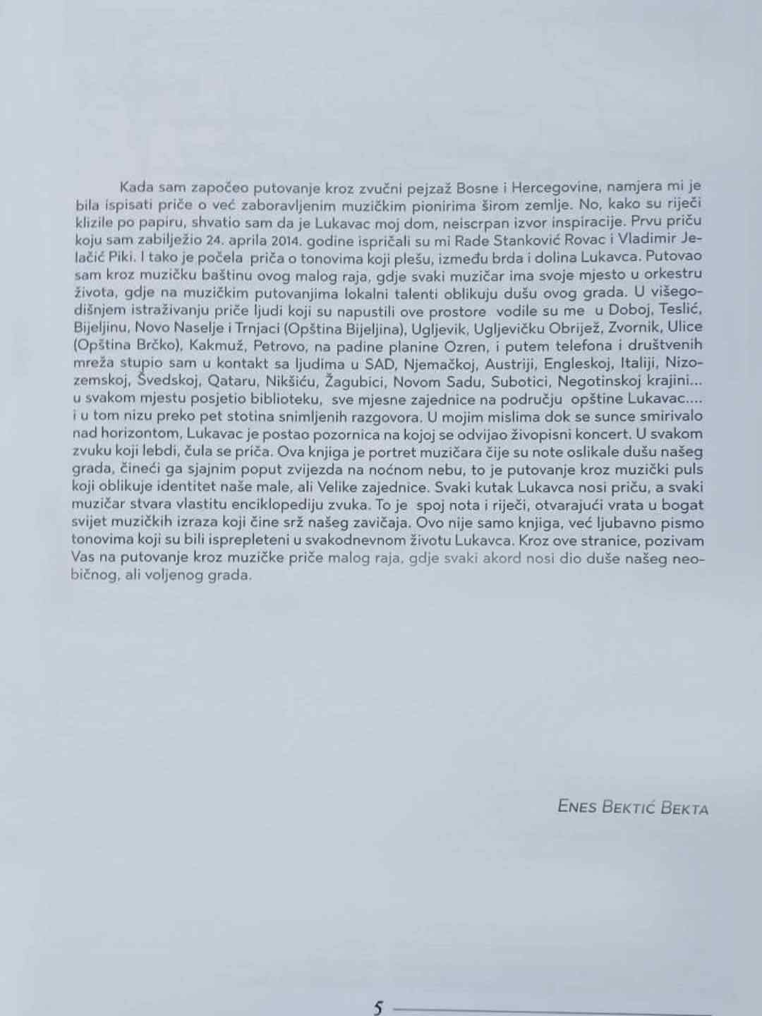 Enciklopedija muzičkog stvaralaštva Lukavca kroz decenije, ispričana kroz priče, slike i sjećanja – izvanredna knjiga koja čuva zvuk, duh i ljude jednog vremena – od šargije do električne gitare