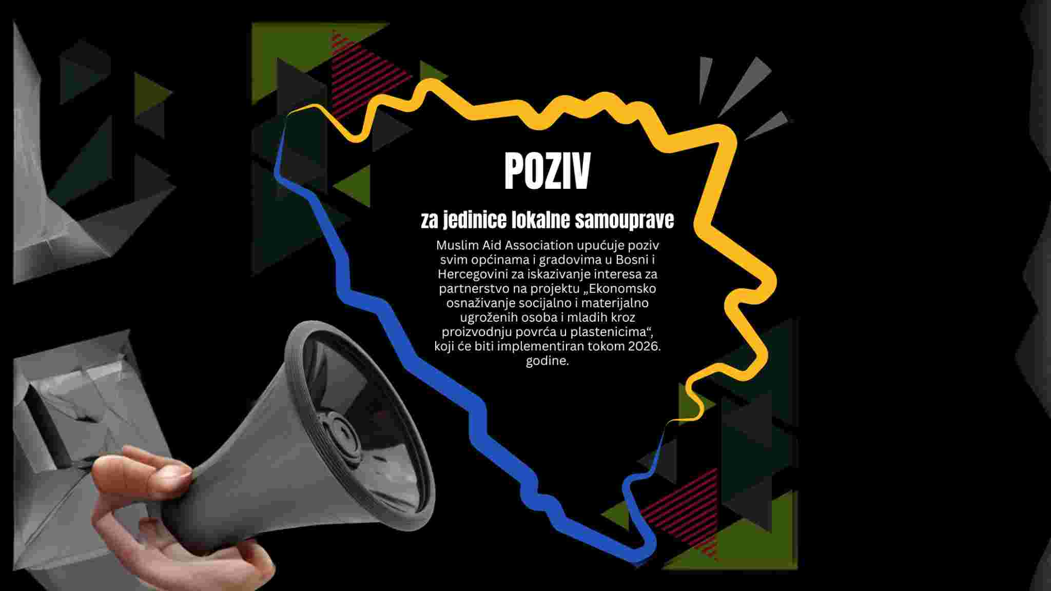 Muslim Aid Association objavio je javni poziv svim općinama i gradovima u Bosni i Hercegovini za iskazivanje interesa za partnerstvo na projektu „Ekonomsko osnaživanje socijalno i materijalno ugroženih osoba i mladih kroz proizvodnju povrća u plastenicima“, koji će biti realizovan tokom 2026. godine.