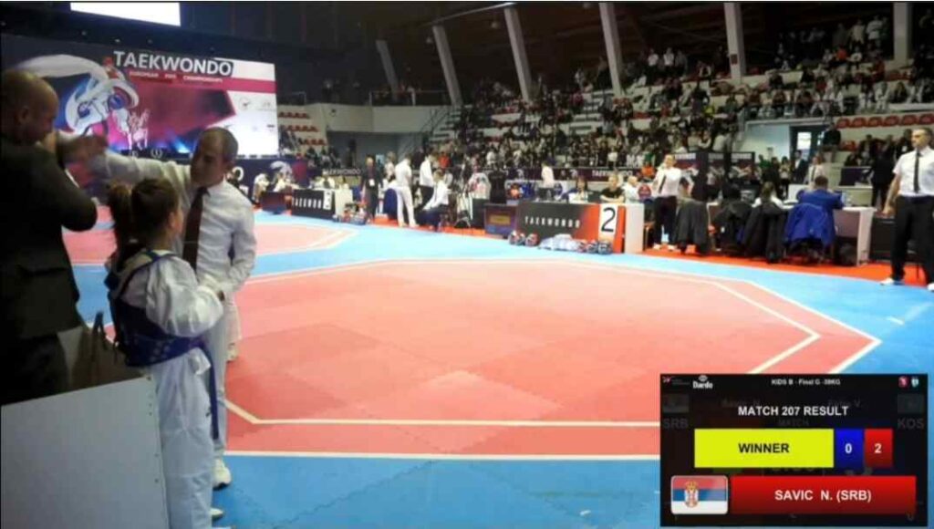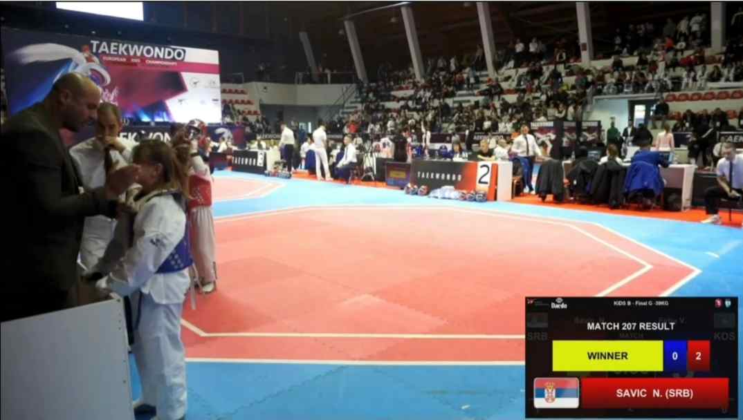 Nevjerojatna scena dolazi s Evropskog prvenstva za mlađe u tekvondou, održanog u Tirani, gdje su se u finalu kategorije djevojčica do 39 kilograma sastale reprezentativke Srbije i Kosova.