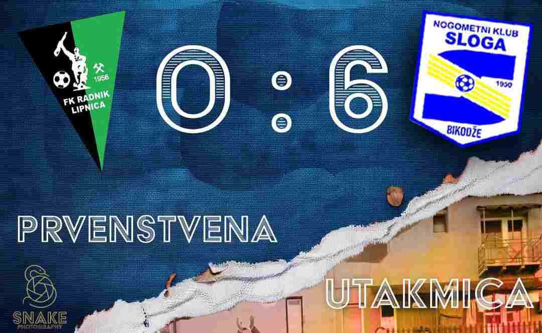 Ekipa NK “Sloga” Bikodže ostvarila je ubjedljivu pobjedu na gostovanju kod FK “Radnik” Lipnica, savladavši domaći tim rezultatom 6:0 u okviru prvenstvenog kola.