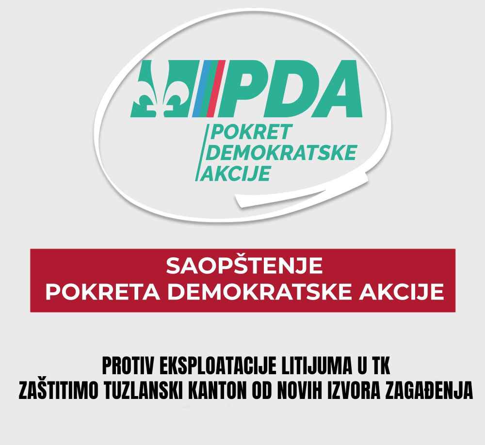 – “Tuzlanski kanton ima pravo na zdrav okoliš, čistu vodu, zrak i zemljište. Ne na nove uzroke bolesti, siromaštva i iseljavanja. PDA ostaje uz svoje građane i ne pristaje na šutnju kada je u pitanju budućnost naše djece i našeg tla” – poručuju iz Pokreta demokratske akcije.