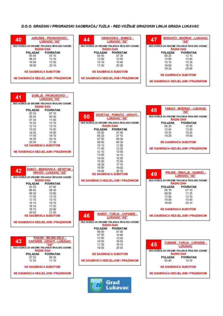 Grad Lukavac obavijestio je javnost da prodaja mjesečnih karata za javni prevoz putnika počinje 26. januara 2026. godine, a karte će se moći kupiti na Autobuskoj stanici Lukavac.