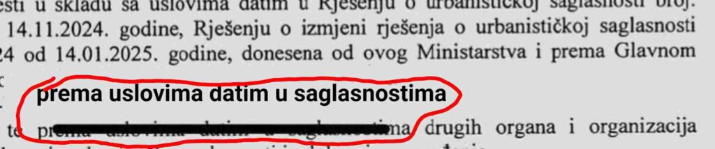 Nije jasno zašto je precrtano “prema uslovima datim u saglasnostima drugih organa i organizacija” i šta to slijedi u daljnjem tekstu?