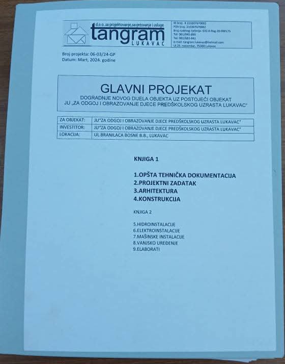 – „Novi objekat bi zauzimao površinu od 400 m², a njegovom izgradnjom kapacitet za upis bio bi povećan za otprilike dodatnih 100 djece.