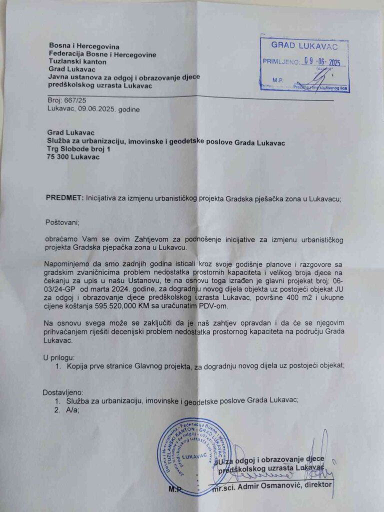 U tom pravcu ide i projekat proširenja obdaništa u Lukavcu kroz izgradnju nove zgrade površine 400 m², koja bi omogućila prijem dodatnih 100 mališana.