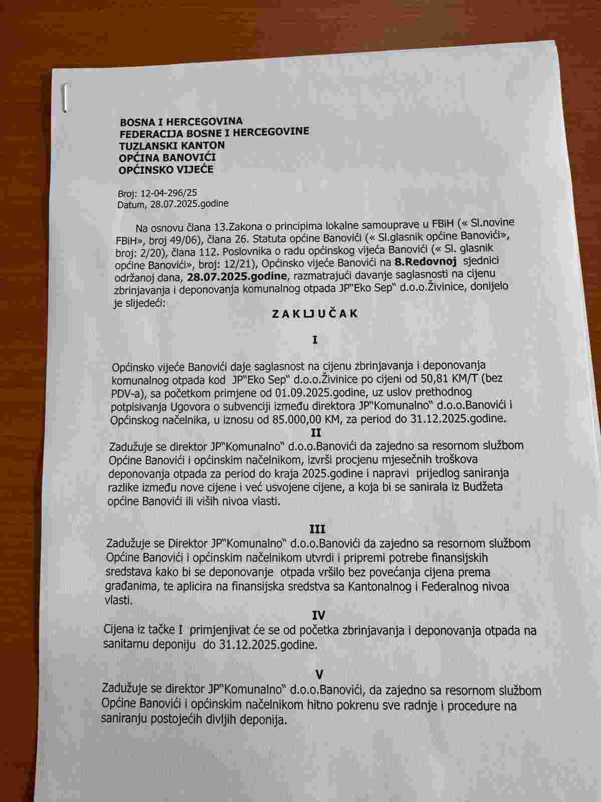 Banovići, pije 3 dana – Predsjedavajući Općinskog vijeća Banovići, Edin Žunić, javno je demantovao nedavne dezinformacije koje su se pojavile u javnosti vezano za finansiranje i odvoz otpada kroz EkoSep.