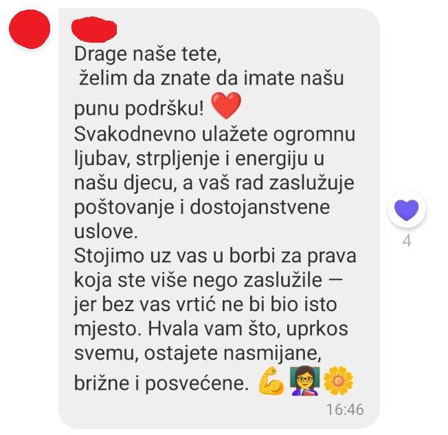 – „Svjesni smo da se novac za sva naša potraživanja ne može stvoriti preko noći, ali ponižavajuće je što smo mi jedina ustanova čijim radnicima regres za 2025. godinu nije isplaćen, pa čak ni obračunat. U Banovićima funkcioniše šest ustanova koje se finansiraju iz budžeta općine – za pet njih je bilo dovoljno sredstava za regres, a za obdanište nije. To je čista diskriminacija! Da li zaista smatrate radnike obdaništa manje vrijednim od ostalih?“