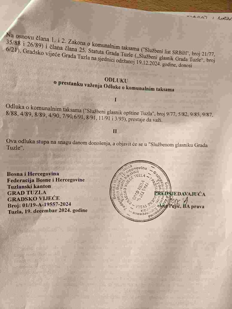 Povodom sličnih odluka, Jusufović je također podsjetila na nedavnu presudu Ustavnog suda u kojoj je Gradsko vijeće Tuzla 19. decembra 2024. godine donijelo „Odluku o prestanku važenja Odluke o komunalnim taksama“, čime su proveli presudu Ustavnog suda FBiH.