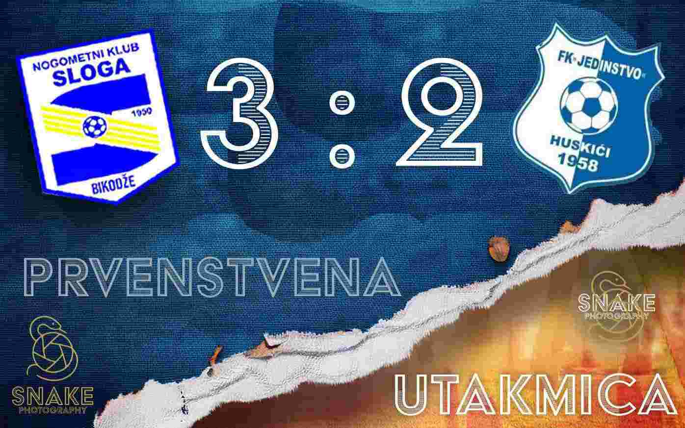 Na terenu u Lugovima odigrana je uzbudljiva utakmica u kojoj je NK “Sloga” Bikodže savladala ekipu FK “Jedinstvo” Huskići rezultatom 3:2. Meč je obilovao borbom, ritmom i prilikama s obje strane, a domaći tim je pokazao karakter i do kraja izborio zasluženu pobjedu.