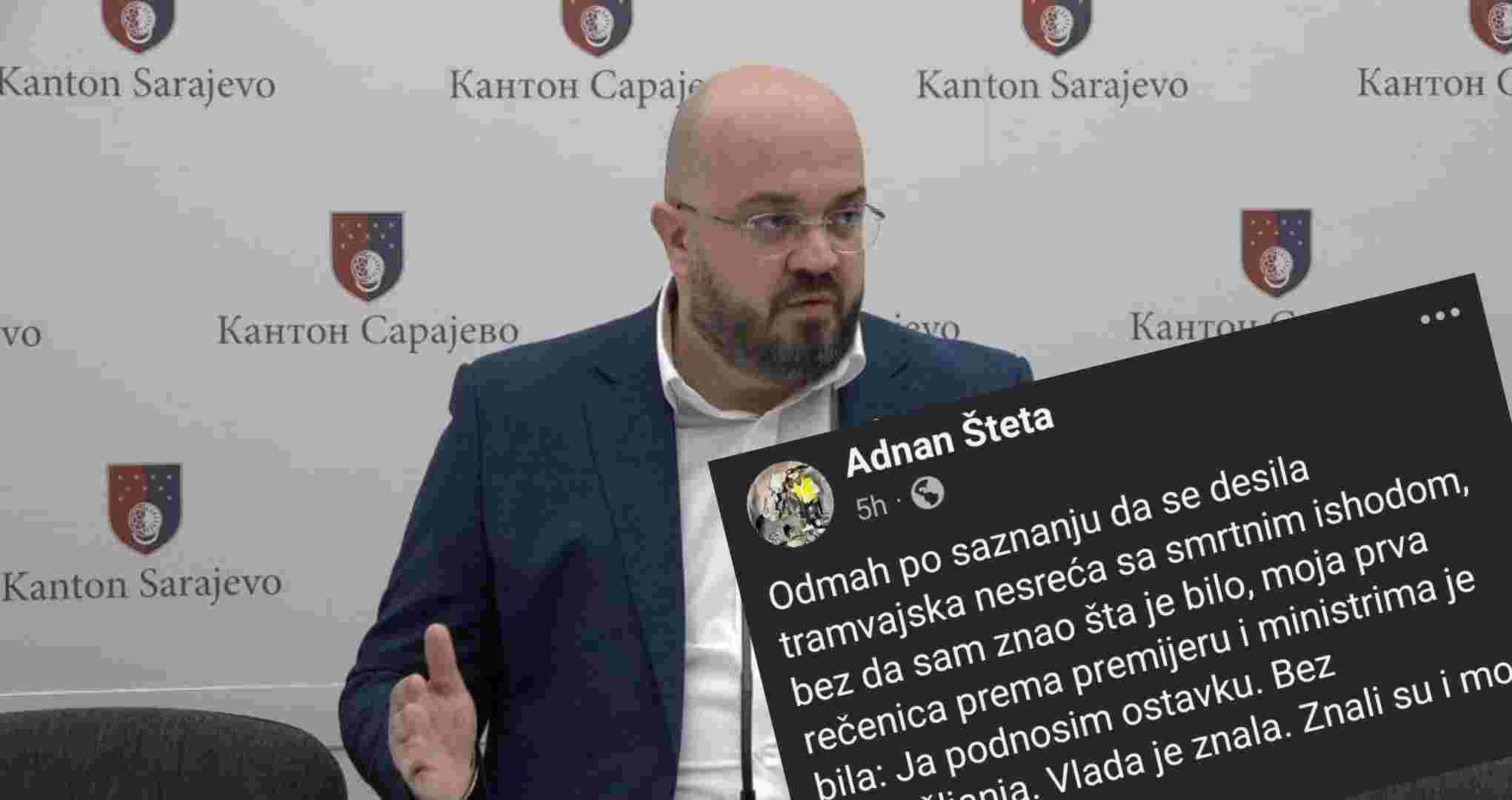 Ministar saobraćaja Kantona Sarajevo Adnan Šteta objavio je emotivnu i opširnu poruku povodom tramvajske nesreće sa smrtnim ishodom, u kojoj tvrdi da je odmah, bez ikakvog razmišljanja, ponudio ostavku.