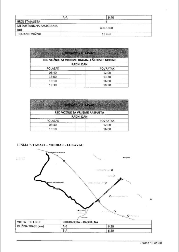 • pristupačnost i redovnost linija za sva naselja,