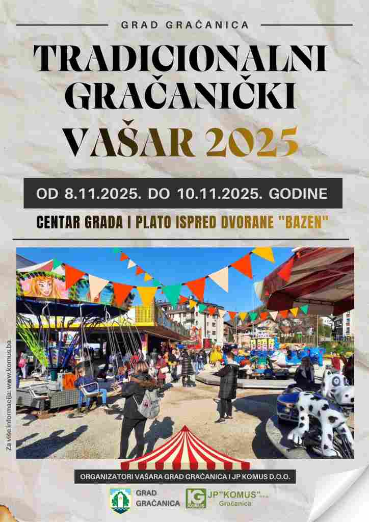 Gračanica će od 8. do 10. novembra 2025. godine ponovo oživjeti svoju najdražu sajamsku tradiciju – Tradicionalni gračanički vašar.