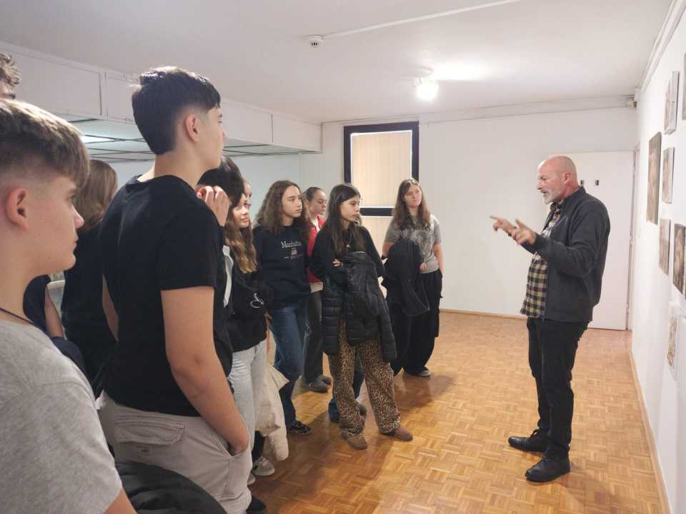 Učenici i učenice 9. a razreda Osnovne škole Katoličkog školskog centra “Sv. Franjo” Tuzla, zajedno s nastavnikom Borisom Pejićem, posjetili su 16. oktobra Atelje Ismet Mujezinović, gdje je nedavno otvorena izložba umjetničkih djela pod nazivom “Povijest u pokretu”.
