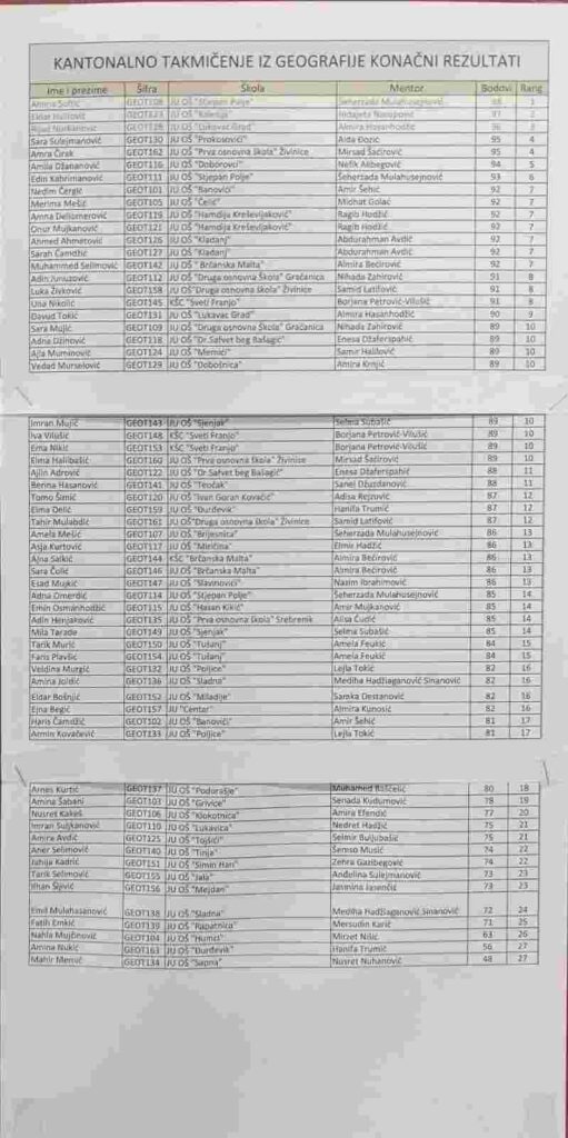 Rijad Nurkanović osvojio treće, a Davud Tokić deveto mjesto u konkurenciji najboljih mladih geografa TK