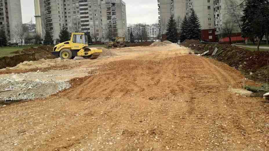 Na Alipašinom Polju, u B fazi, još jedna parkovska površina nestaje pod asfaltom – gradi se novi parking.