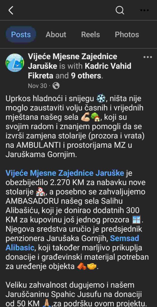 Postavlja se, stoga, sasvim logično pitanje: zašto se, u slučaju Donjeg Poljica, bira skuplja opcija, dok se u drugim mjesnim zajednicama stanovnici primoravaju da iz vlastitog džepa, korak po korak, obnavljaju objekte od ključne važnosti za lokalnu zajednicu? Zašto jedni imaju na raspolaganju budžetska sredstva u iznosima od stotina hiljada ili čak miliona maraka, dok su drugi prepušteni sami sebi?