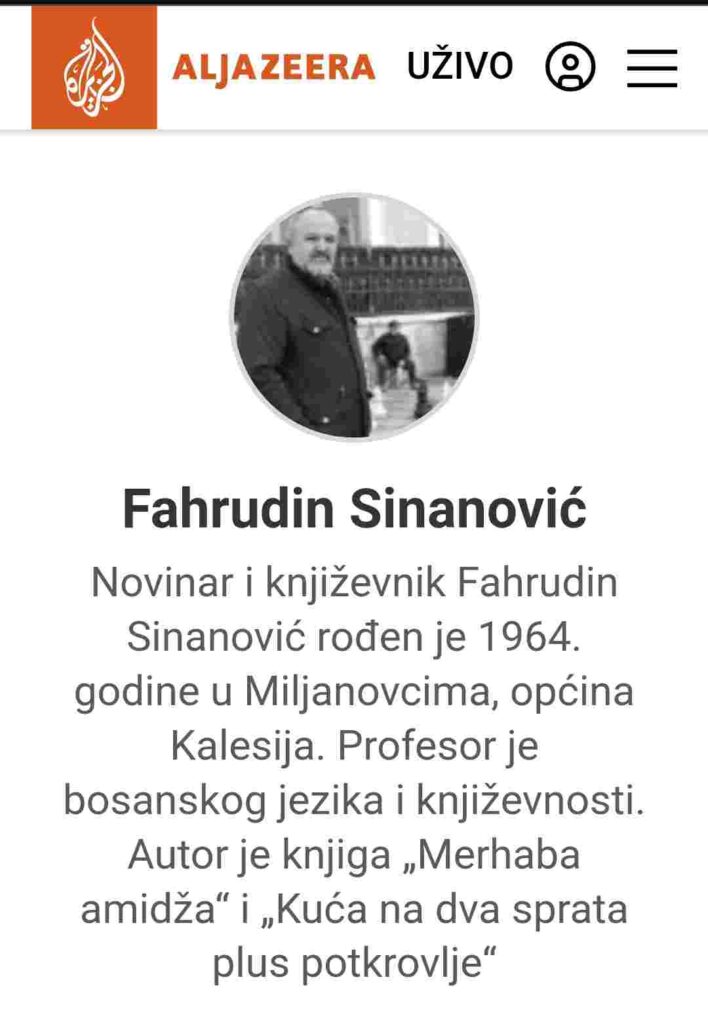 Da g. Sinanović nije neka “šuša i bezveznjaković”, navest ćemo da je AlJazeera o njemu nspisala sledeće: