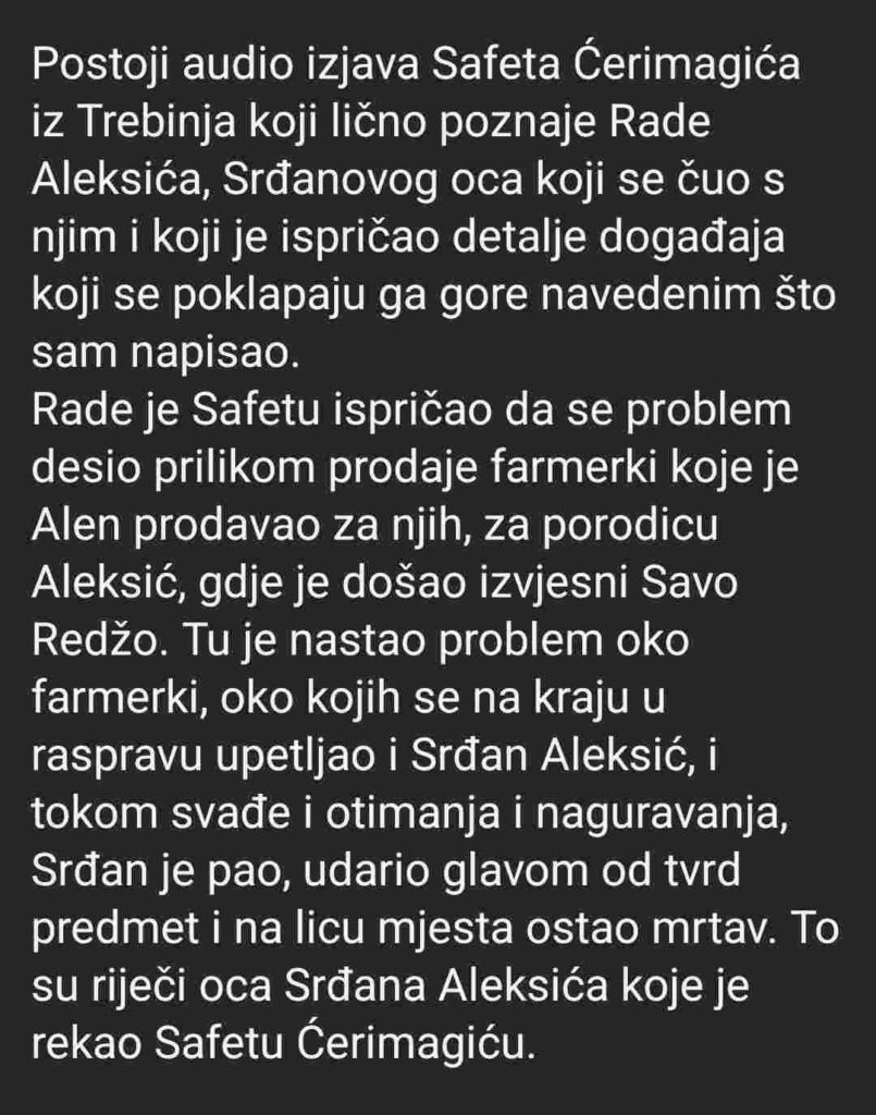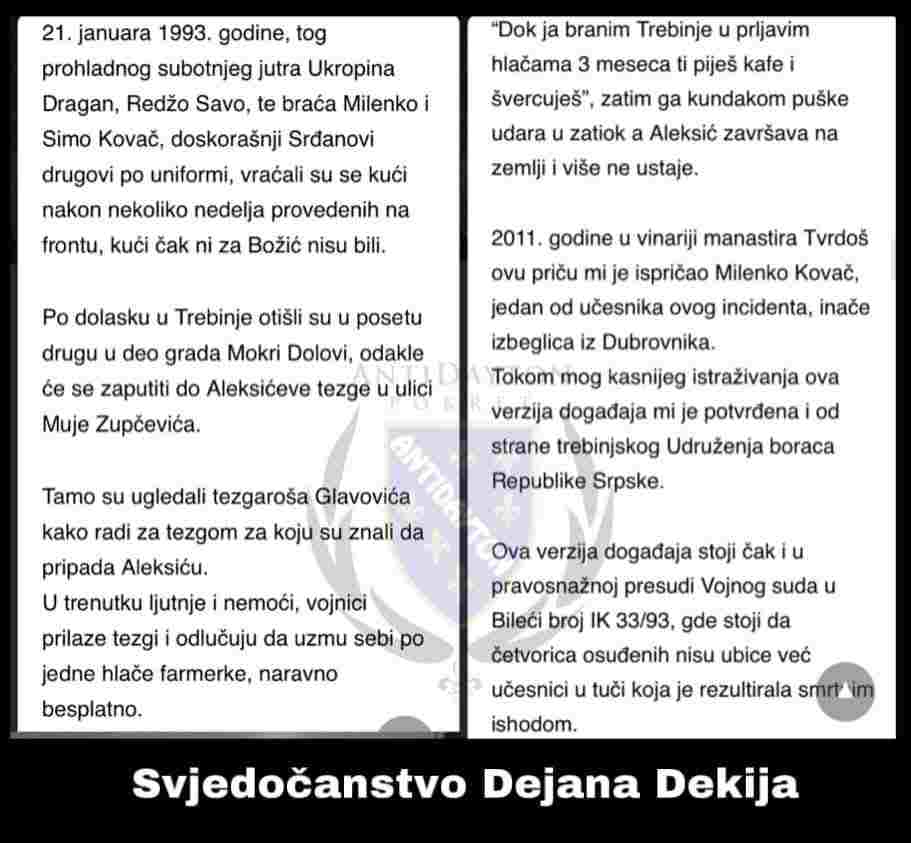 Verzija 2.0: Srđan Aleksić dezerter, švercer, Alen Glavović vojnik VRS i Srđanov radnik na švercerskoj tezgi u Trebinju?