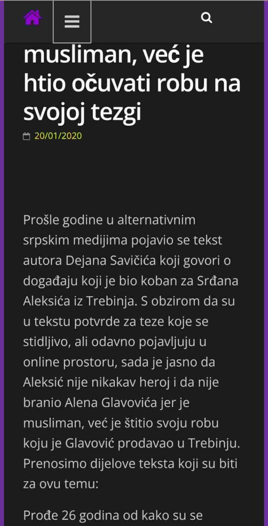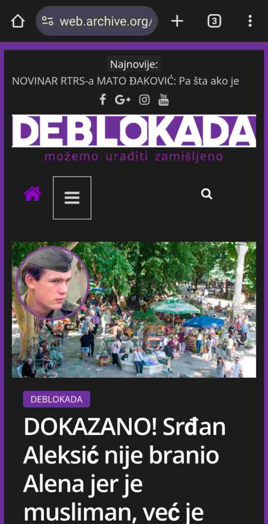 Naslovna gotografije iz članka “Srđan Aleksić: Sarajevski heroj, ili dezerter iz Trebinja!” objavljenog na web portalu Pravda.