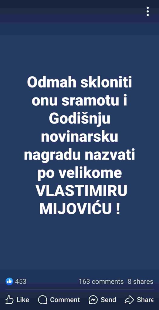 Na fejsbuk stranici “AntiDayton pokret” postoji objava, uredno potpisana od strane Nihada Aličkovića, u kojoj između istslog piše: