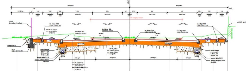 Na gornjoj slici dole su mjere sa novog projekta saobraćajnice, a na donjoj koliko/dokle će zauzeti polovica dvije staze kolovoza, pješačka i biciklistička staza na strani gdje je izvor “Petrak”.